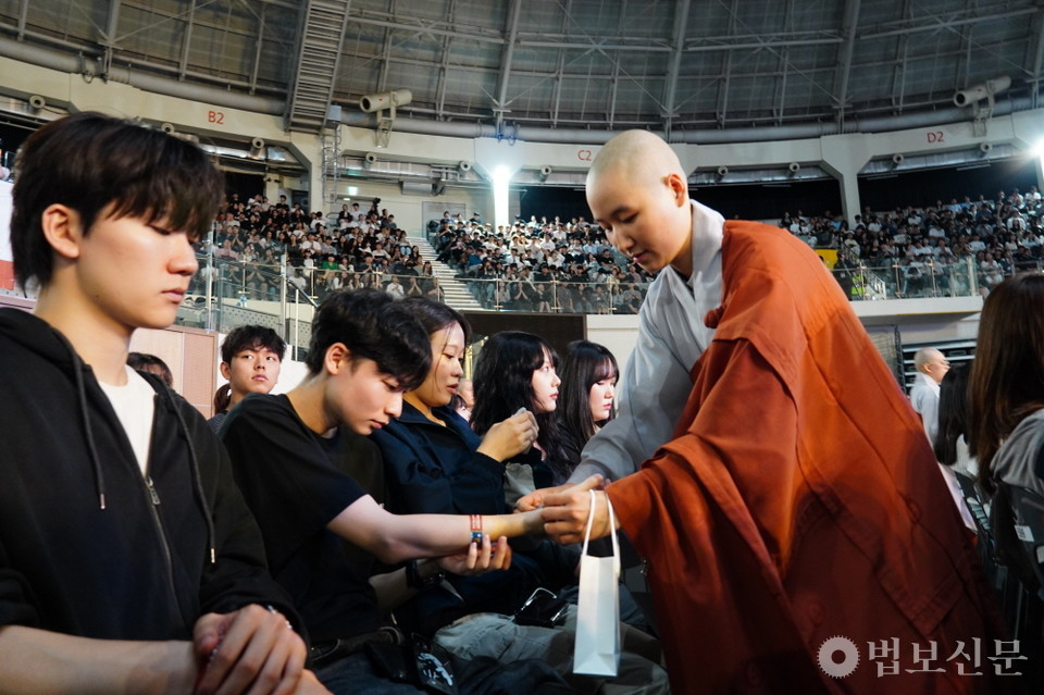 수계법회에 이어 ‘제119회 지역미래불자육성장학 장학증서 수여식’이 진행됐다. 지역미래불자육성장학 2021년 동국대 건학위원회가 시작한 장기 프로젝트로, 학생들과 지역 사찰을 연결해 지역사회에 기여하고 미래불자를 양성하는 것을 목표로 하는 인재불사 장학사업이다. 제119회 장학증서 수혜 대상은 영캠프에 참석한 3500명 전원이다.